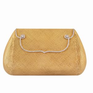 in oro giallo e bianco lavorata con motivo a paglia, apertura profilata da diamanti di cui due a goccia di dimensioni [..]