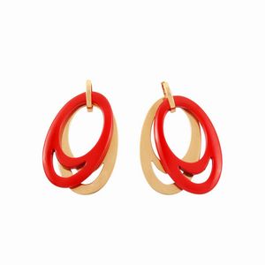 pendenti con ovali in oro rosa e resina rossa, gr. netti oro 21,2. Misura 7,5 x 3 cm ca. Firmati: Faraone [..]
