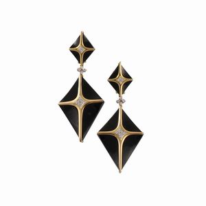 in oro giallo e bianco, ciascuno con due losanghe allineate in onice attraversate da un motivo cruciforme in [..]