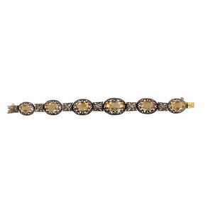 in argento e oro finemente traforato con sei motivi ovali ognuno con quarzo citrino e diamanti ad ornamento, [..]