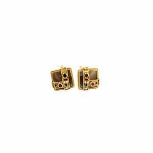 in oro giallo e palladio a fascia con motivo geometrico gradinato ornato da diamanti e rubini, gr. 12,1. Misura [..]
