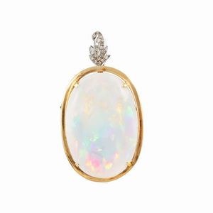 con grande opale nobile arlecchino ovale montata in oro giallo e bianco con diamanti sulla contromaglia a guisa [..]
