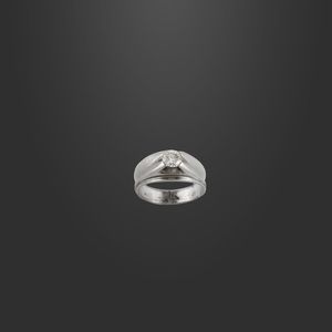 in oro bianco a fascia sagomata con brillante centrale del peso di 0,60 ct ca., gr. 8,1. Misura 20