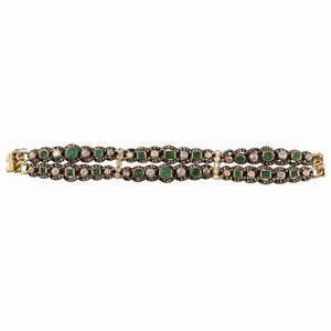 a doppia maglia groumette in oro e argento ornato da diamanti del peso complessivo di 6 ct ca. (quattro mancanti) [..]