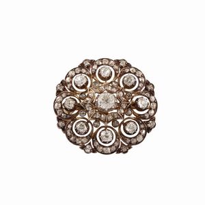 doppio uso in oro e argento traforata a rosone con diamanti di cui uno di dimensioni maggiori posto al centro [..]