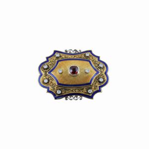 a soggetti differenti realizzati in oro giallo, bianco e rosa con brillanti incolore e neri, corindoni, granati [..]