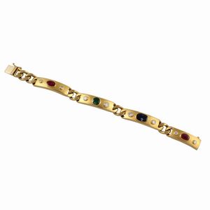in oro giallo costituito da quattro segmenti satinati con brillanti del peso complessivo di 1,20 ct ca., rubini, [..]