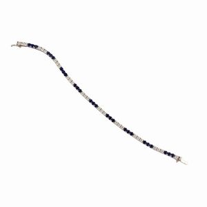 rivière in oro bianco percorsa da brillanti del peso complessivo di 2,70 ct ca., alternati a zaffiri del peso [..]