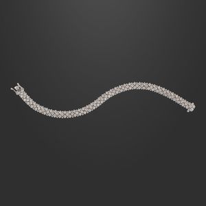 a nastro in oro bianco percorso da brillanti del peso complessivo di 4,80 ct ca., gr. 29,4. Lunghezza 18 cm