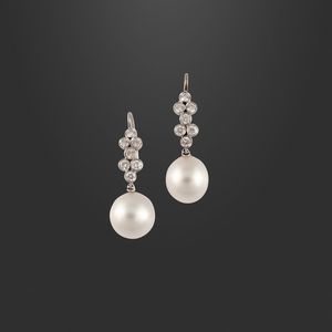 pendenti in oro bianco ciascuno con perla South Sea 12,5 mm sospesa ad un motivo a cascata con brillanti del peso [..]