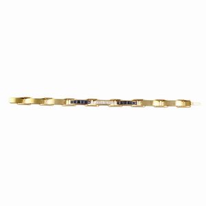 in oro giallo costituito da elementi geometrici, ornato al centro da zaffiri e diamanti carré del peso di 1 [..]