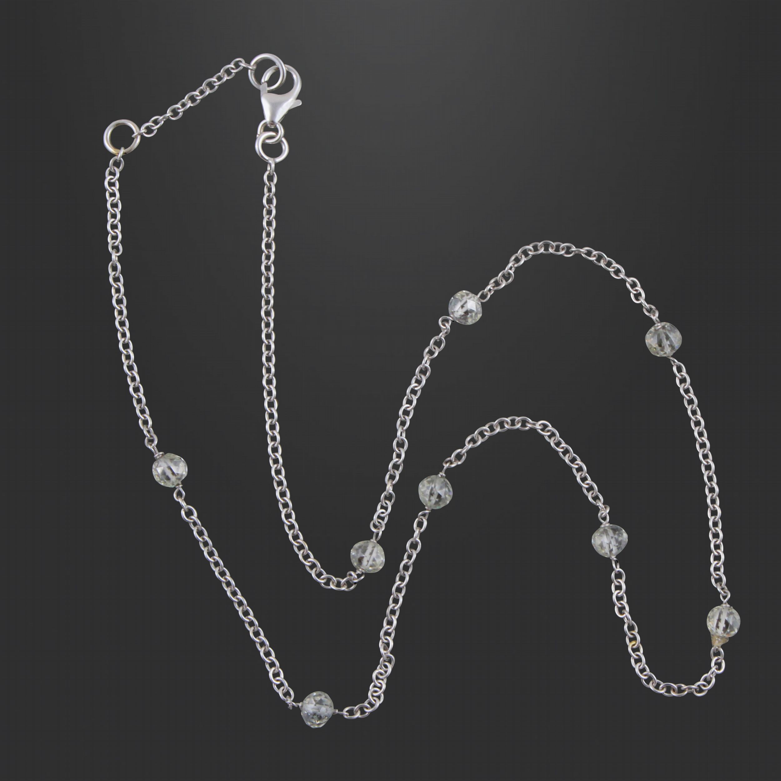in oro bianco percorso da otto diamanti a sfera sfaccettati, gr. 3,9.