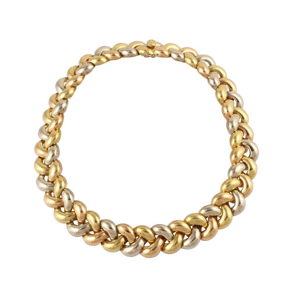 in oro giallo, bianco e rosa a treccia bombata, gr. 133,5.