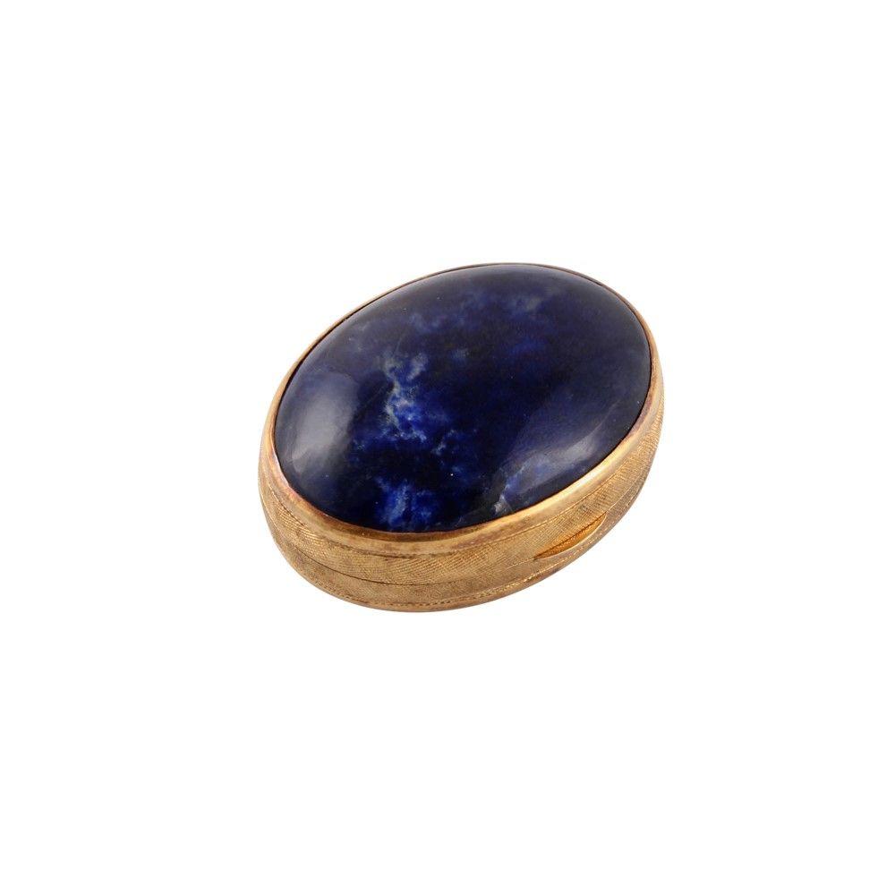 a forma ovale in oro giallo con sodaliti cabochon.
