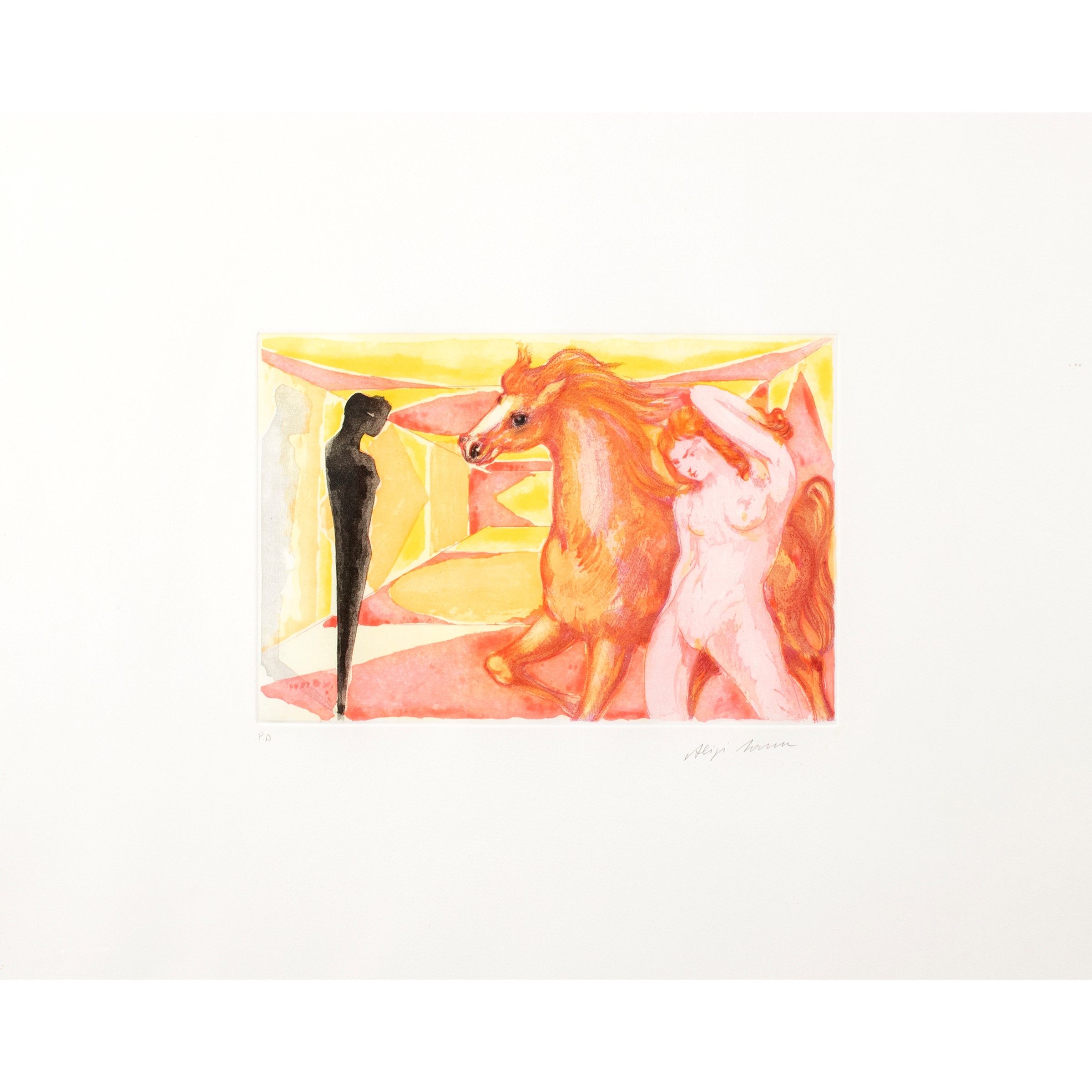 Milano 1912 - Pollensa 2000 Pentesilea e l'ombra, acquaforte, es. p.a., firmata in basso a destra, timbro a secco