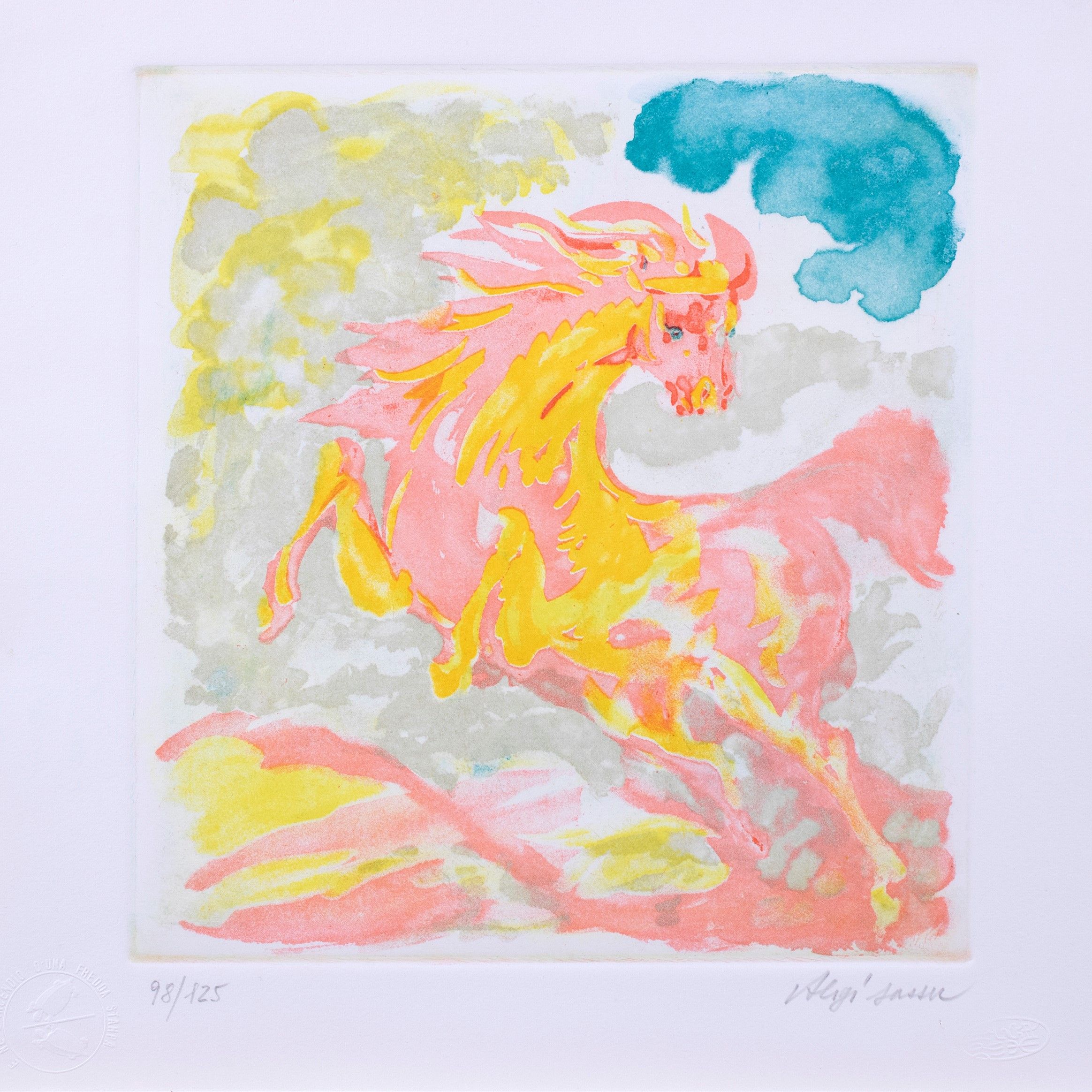 Milano 1912 - Pollensa 2000 Senza titolo, serigrafia a colori, es. 98/125, firmata in basso a destra, timbro a secco E NE L'INCENDIO D'UNA FREDDA STAMPA