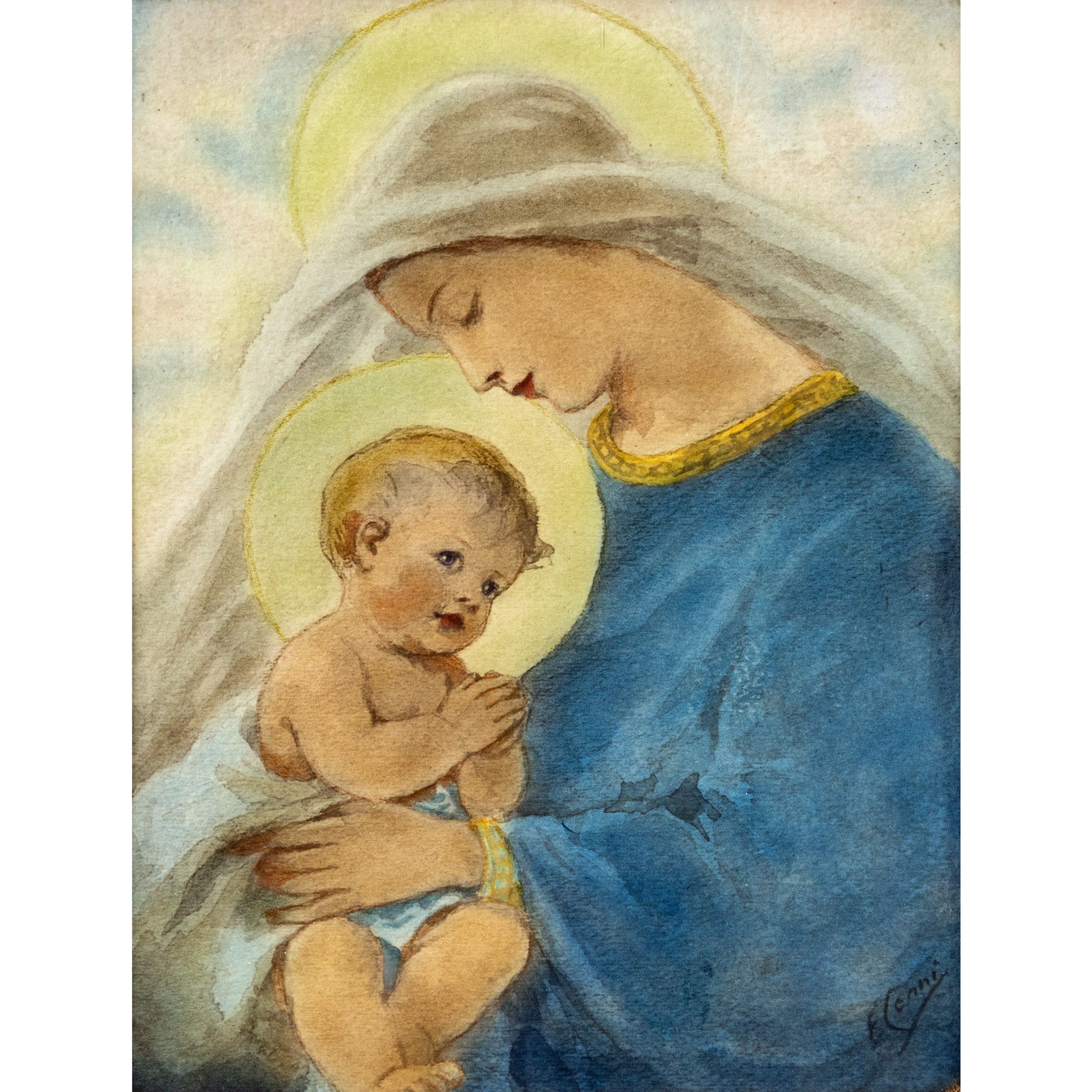 Milano 1876-1947 Madonna con Bambino, acquerello su carta, firmato in basso a destra