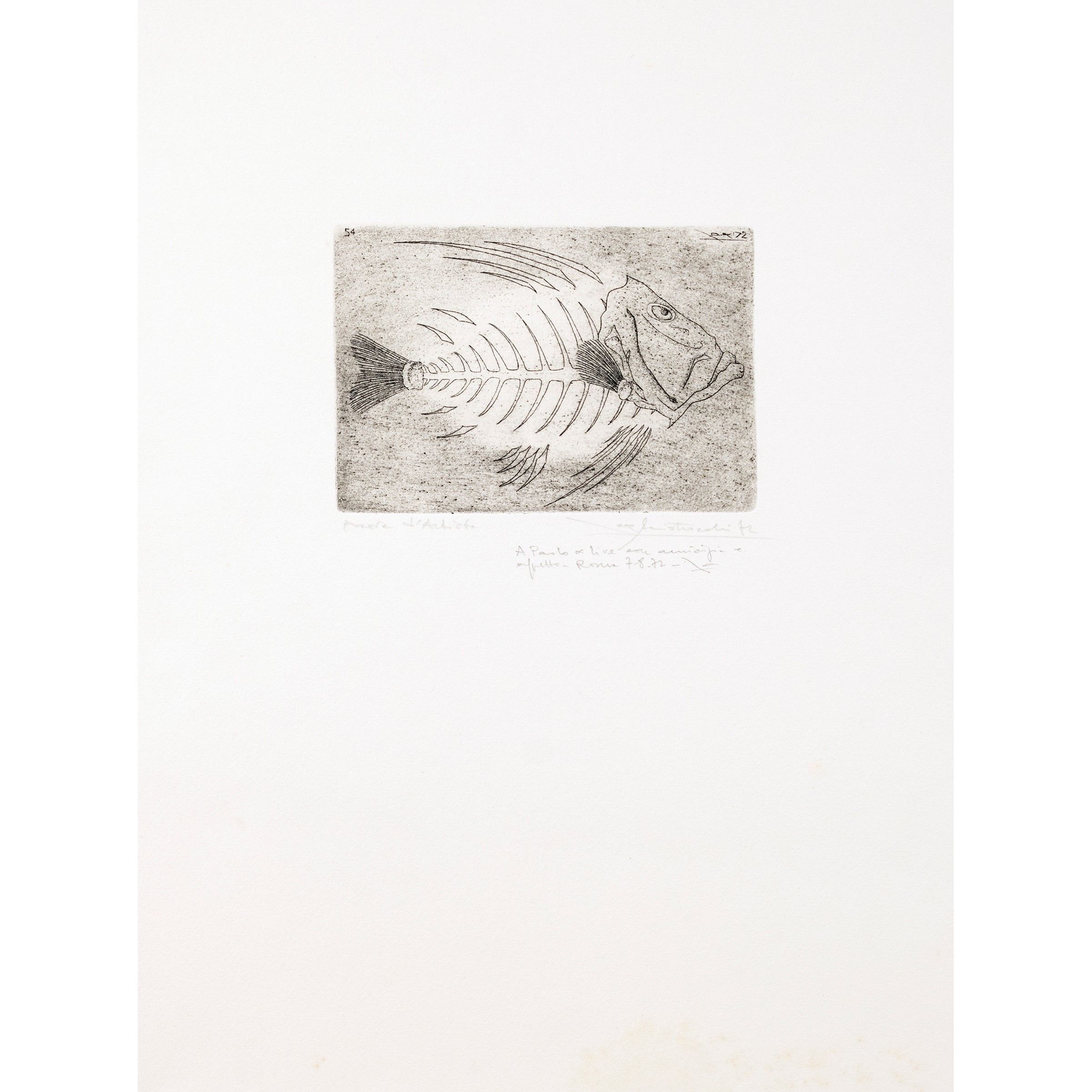 Italia XX Sec. Senza titolo, 1972, acquaforte, prova d'artista, firmata e datata in basso a destra, con dedica