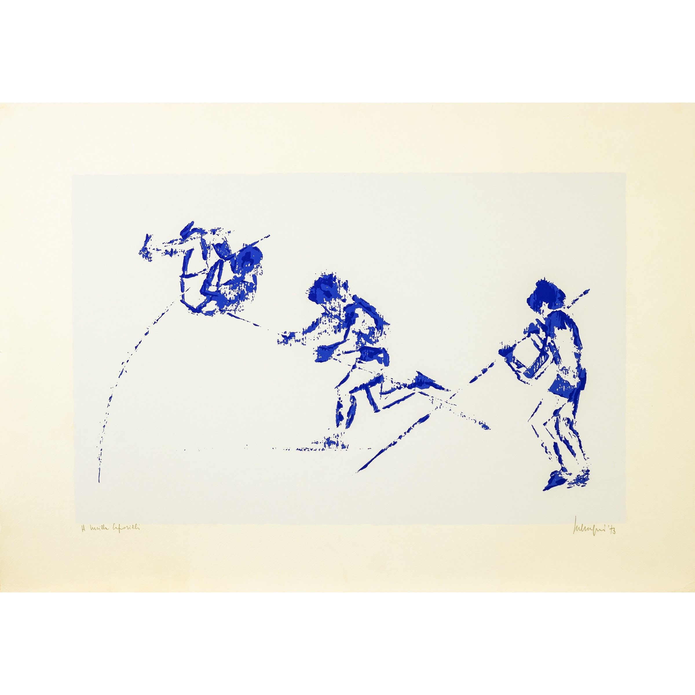 XX Sec. Salto con l'asta, 1973, serigrafia a colori, firmata e datata in basso a destra, con dedica