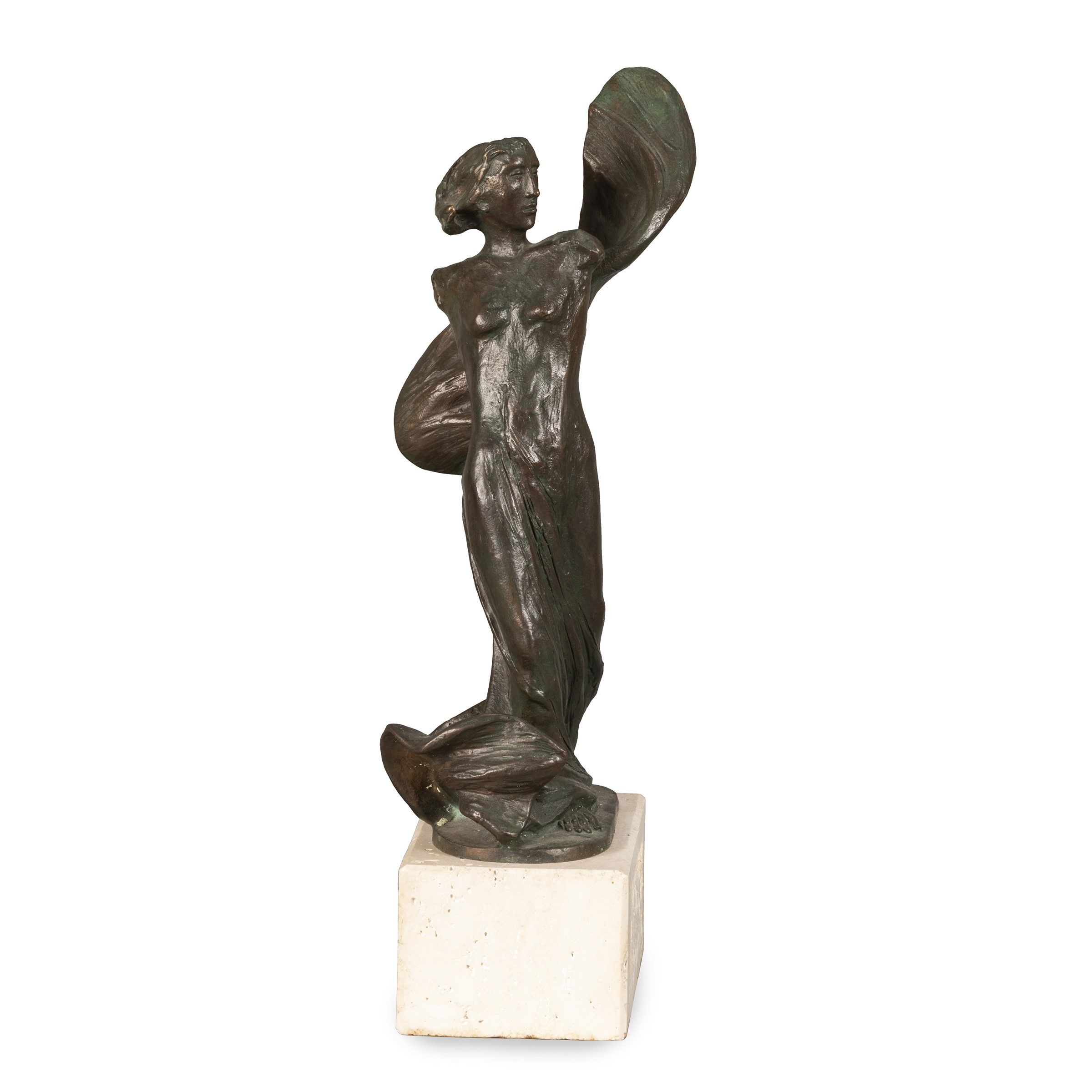 Napoli, XX Sec. Senza titolo, 1982, scultura in bronzo brunito, firma illegibile e timbro della Fonderia, poggiante su base in travertino