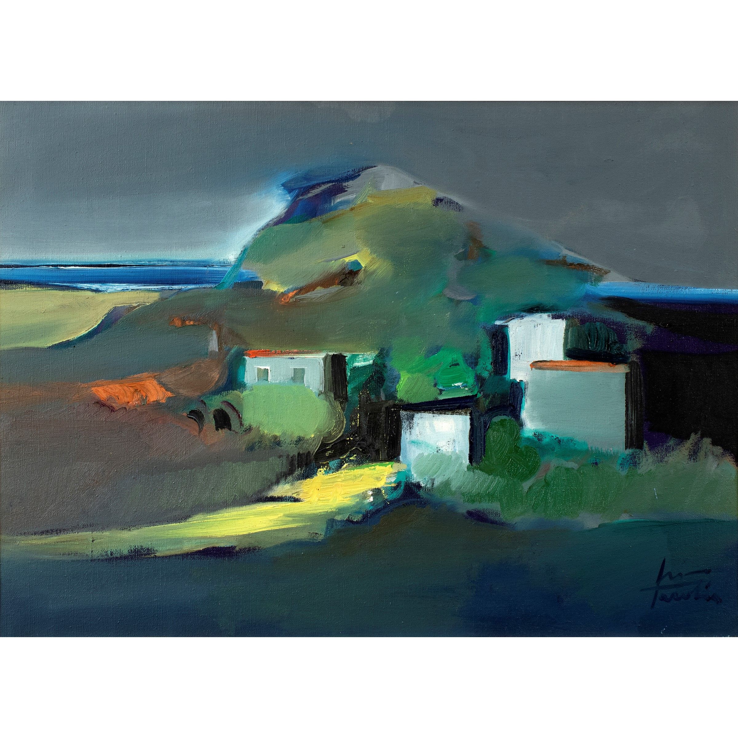 Trapani 1938 - Roma 2021 Paesaggio, olio su tela, firmato in basso a destra