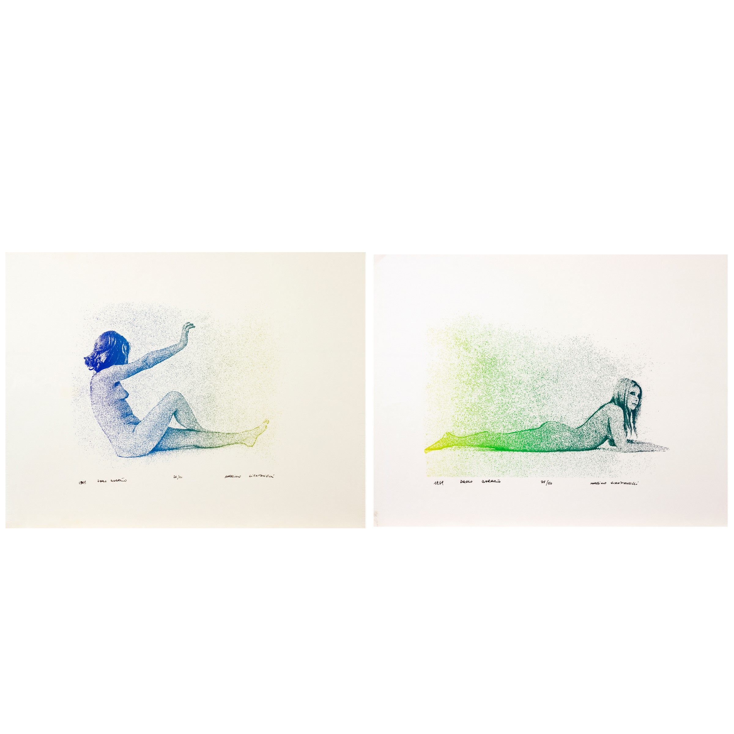 XX Sec. Nudo disteso e Nudo seduto, 1969, coppia di serigrafie a colori, es. 35/50 - 21/50, firmate e datate