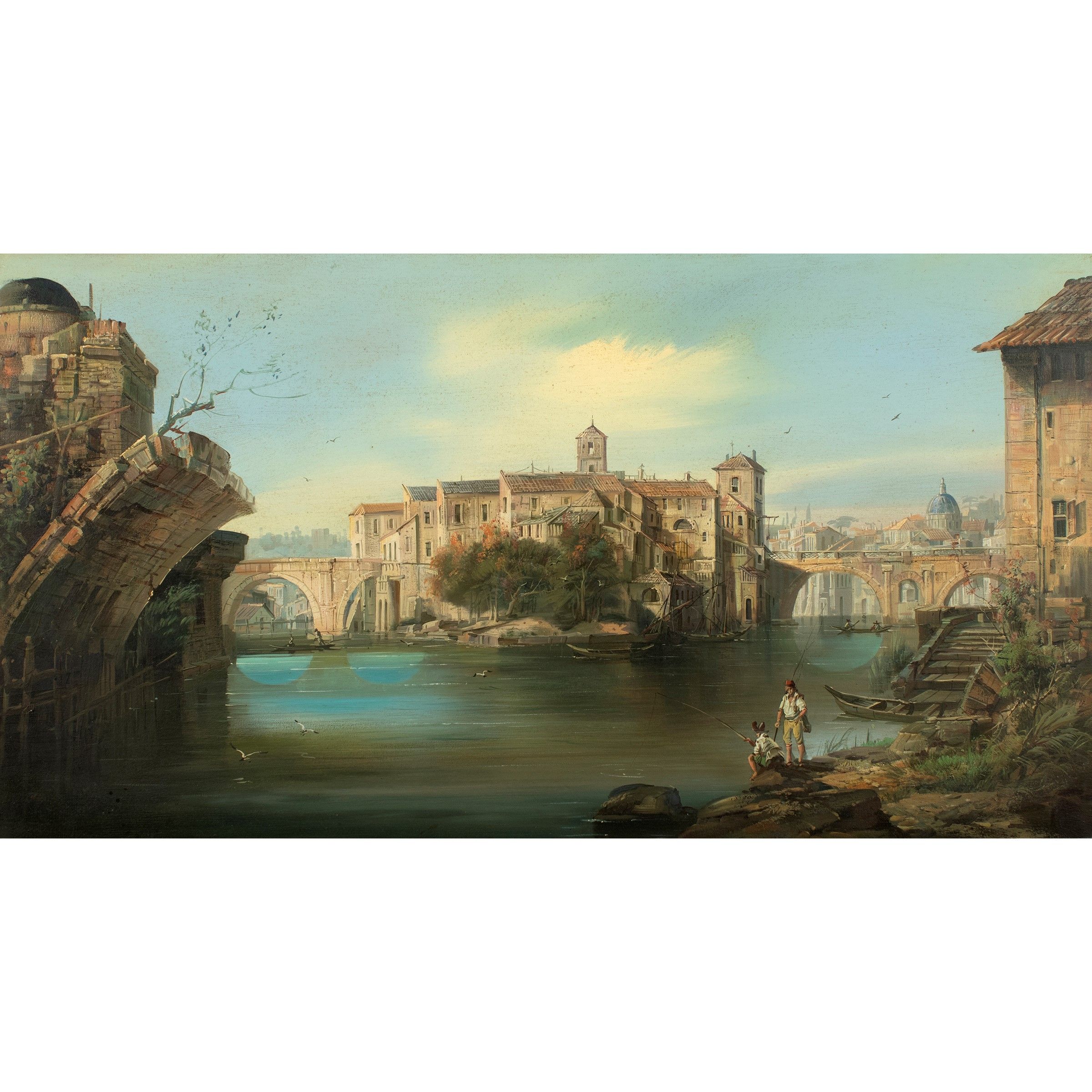XX Sec. Veduta dell'isola Tiberina, olio su tela