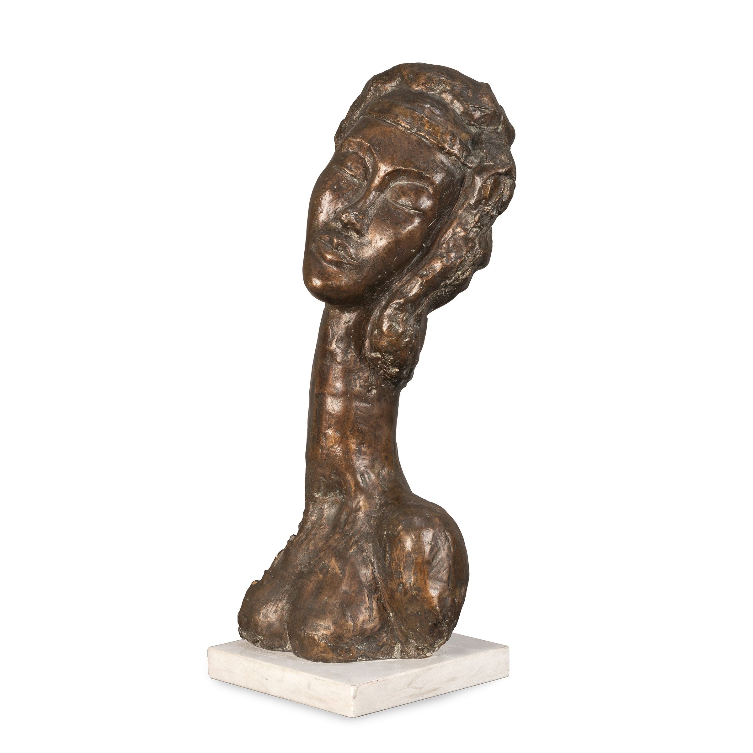 XX Sec. Busto femminile, reca firma Tea, poggiante su base squadrata in marmo bianco