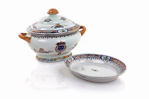 Zuppiera con coperchio e vassoio in porcellana, Cina, Compagnia delle Indie