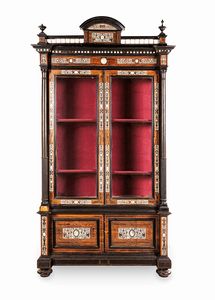 Vetrina in legno naturale ed ebanizzato con tarsie alla maniera di Giovan Battista [..]