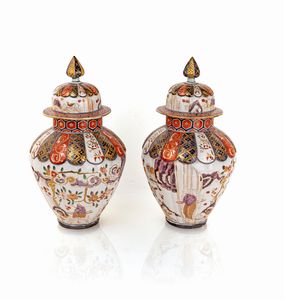 altezza cm 46 caratterizzate da carpe delineate in viola con lumeggiature dorate; la parte superiore ed il coperchio [..]