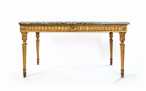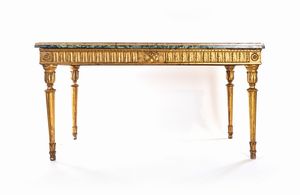 cm 135x81x42 impreziosita da finiture ornamentali in bronzo dorato; piano rettangolare in marmo bianco sormontato [..]