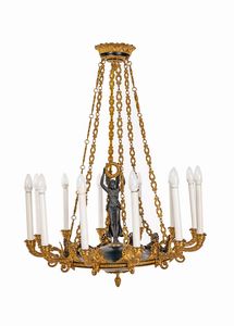 cm 90x77 con bracci disposti lungo la circonferenza del montante in forma di trottola sorretta da catene riunite [..]