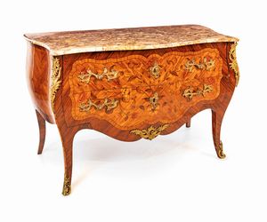 cm 85x115x61 con applicazioni e finiture ornamentali in bronzo dorato; di forma bombata con spigoli sagomati,  [..]