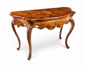 cm 83x144x68 con piano sagomato, fascia mossa comprendente un cassetto, profilo curvilineo, gambe mosse. Difet [..]