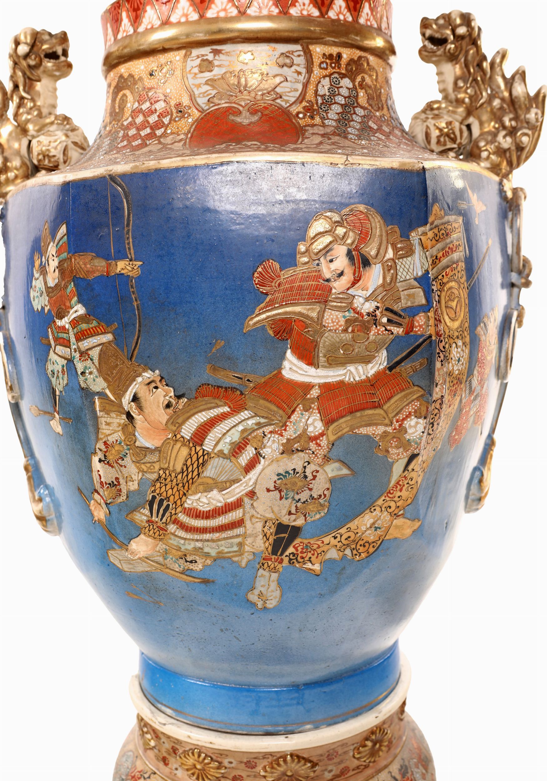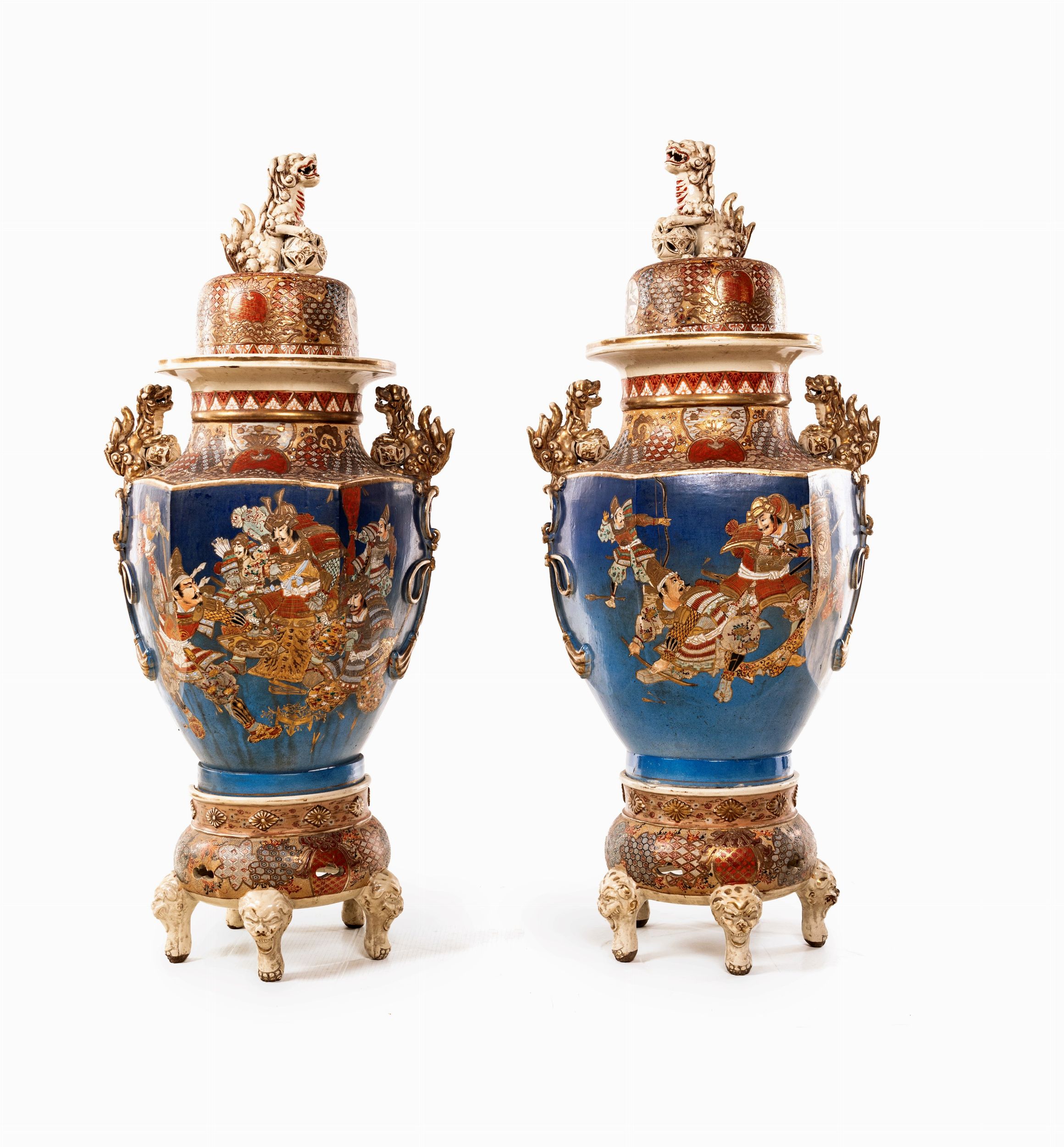 Coppia di grandi vasi in ceramica con base e coperchio, Giappone, XIX secolo
