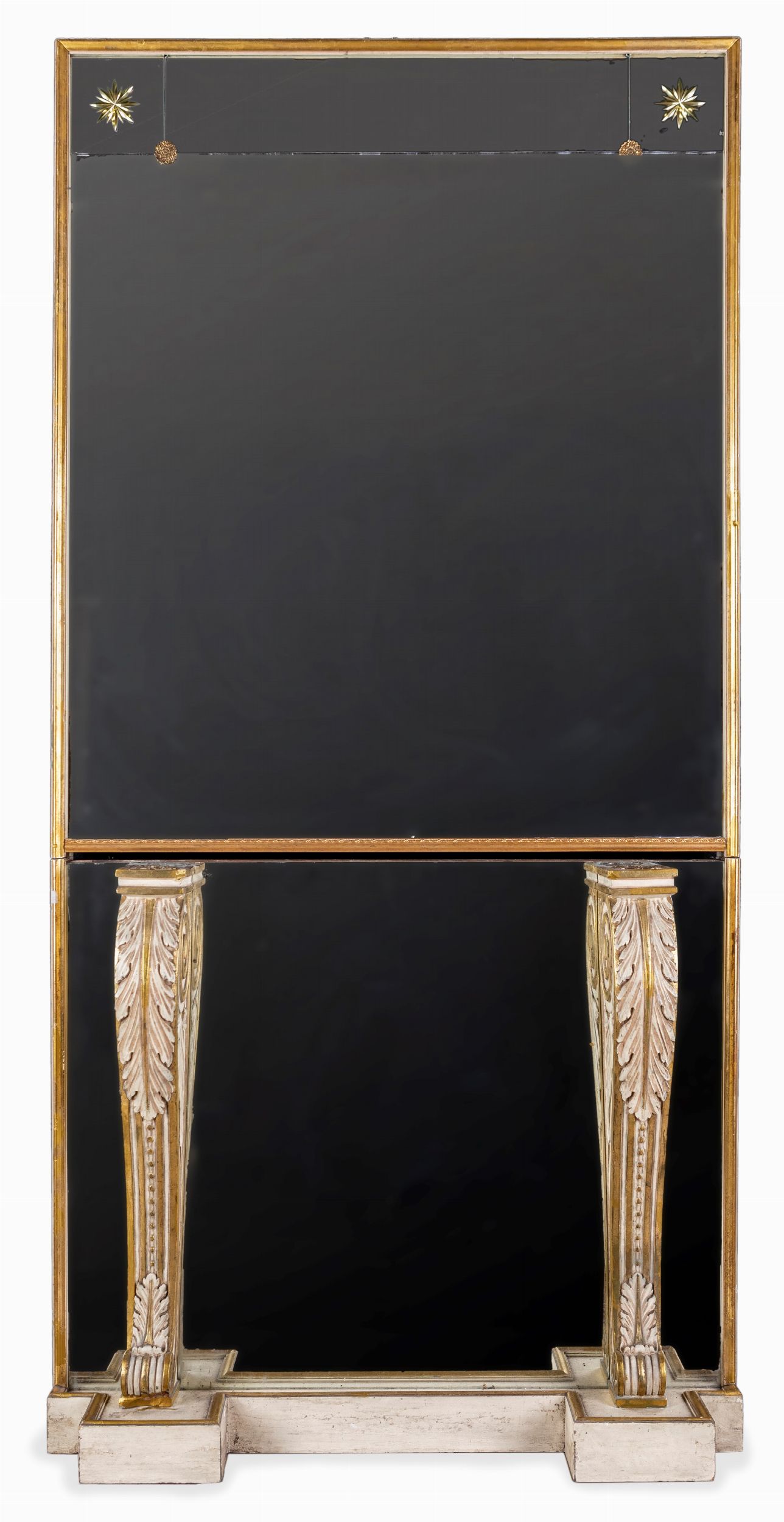 costituito da due specchiere rettangolari di cui quella superiore con stelle angolari e quella inferiore abbellita ai lati da mensoloni incurvati con rilievi vegetali intagliati