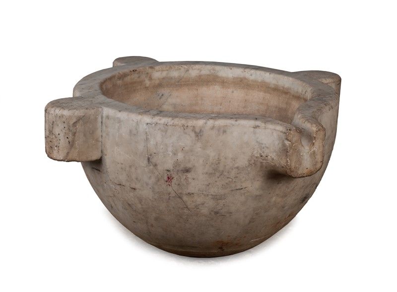 Grande mortaio bocciardato in marmo bianco, XVII secolo