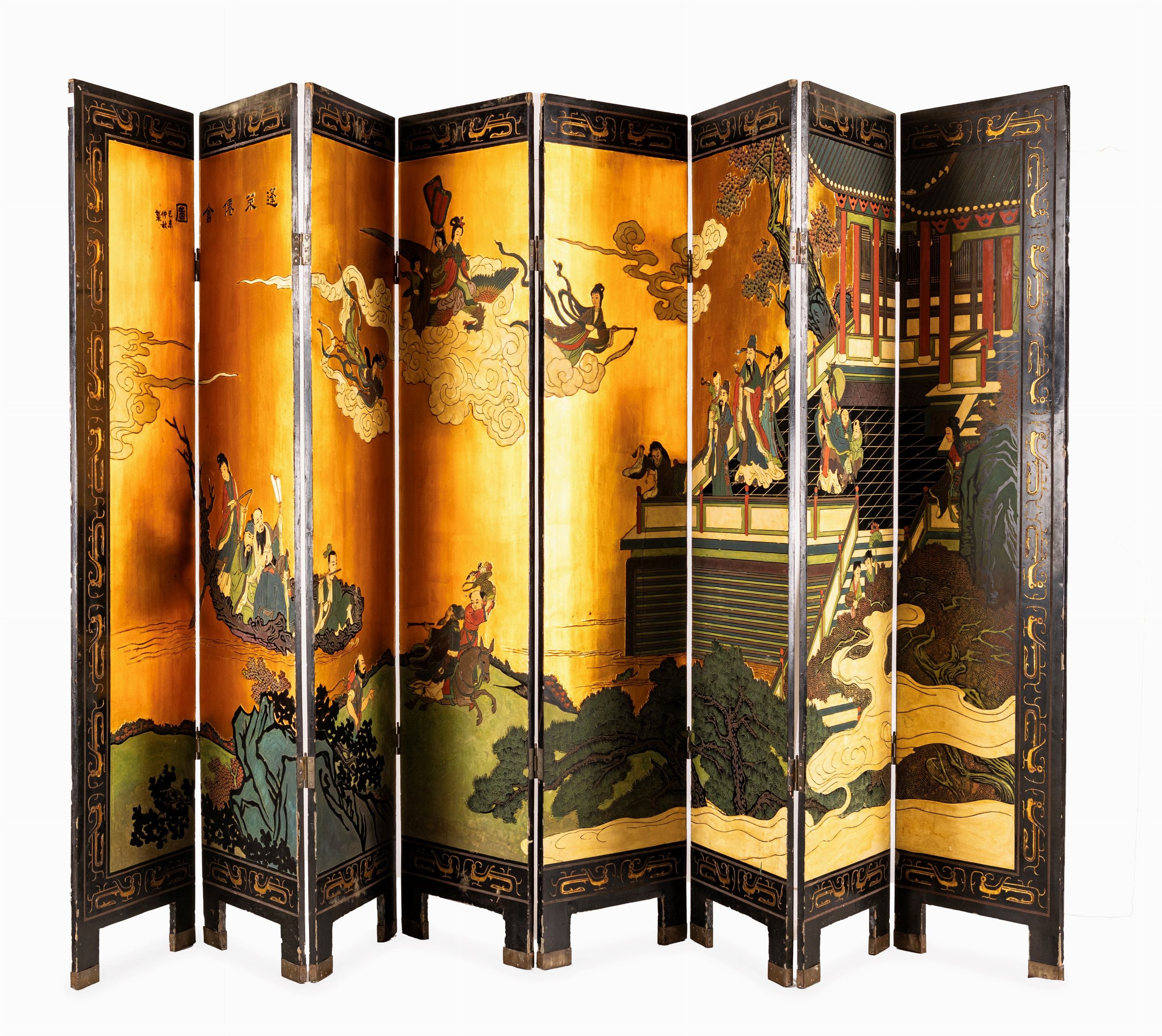 Paravento a otto ante in legno laccato, Giappone, inizi del XX secolo
