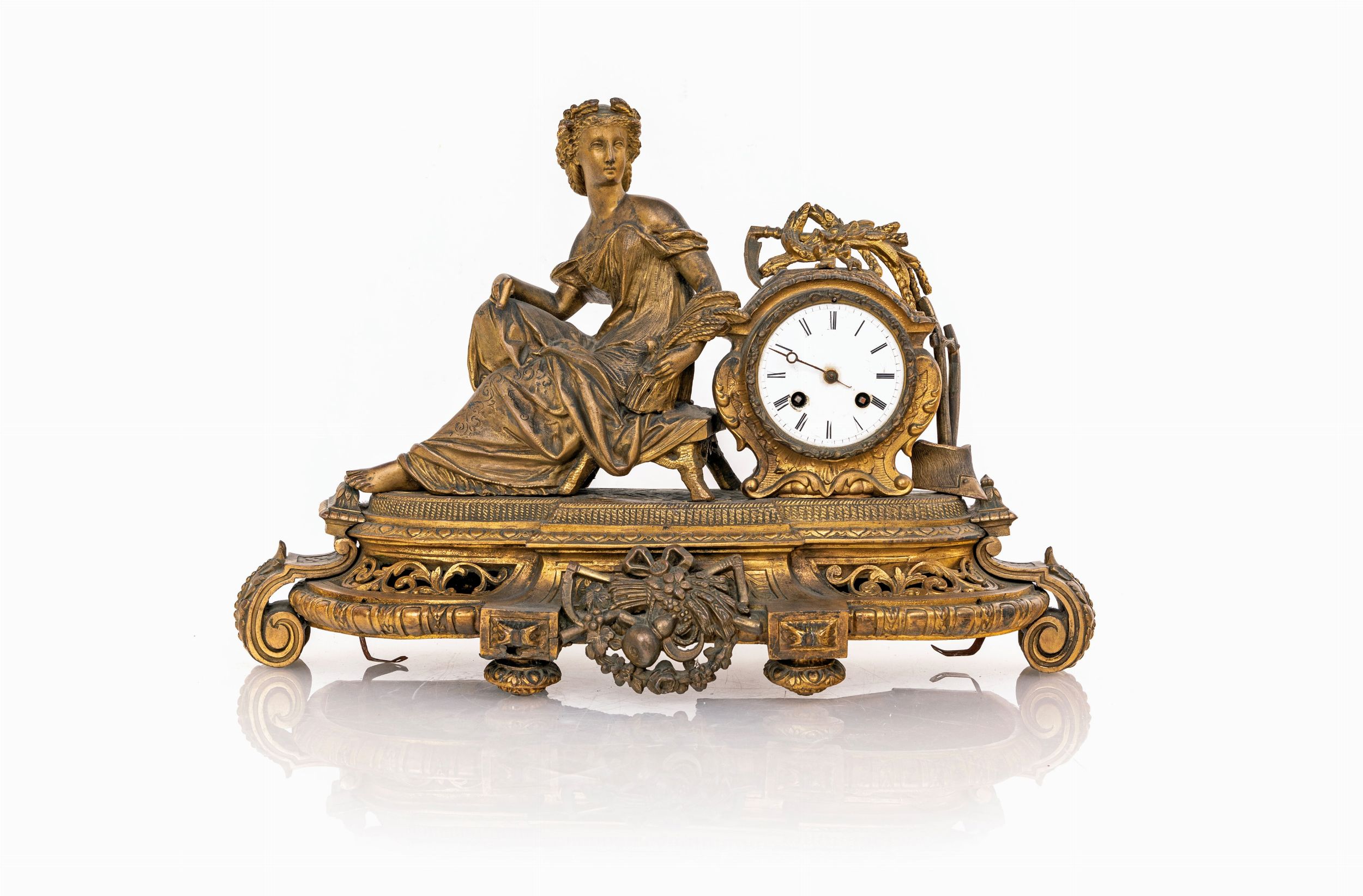 Pendola da camino in antimonio dorato, seconda metà del XIX secolo
