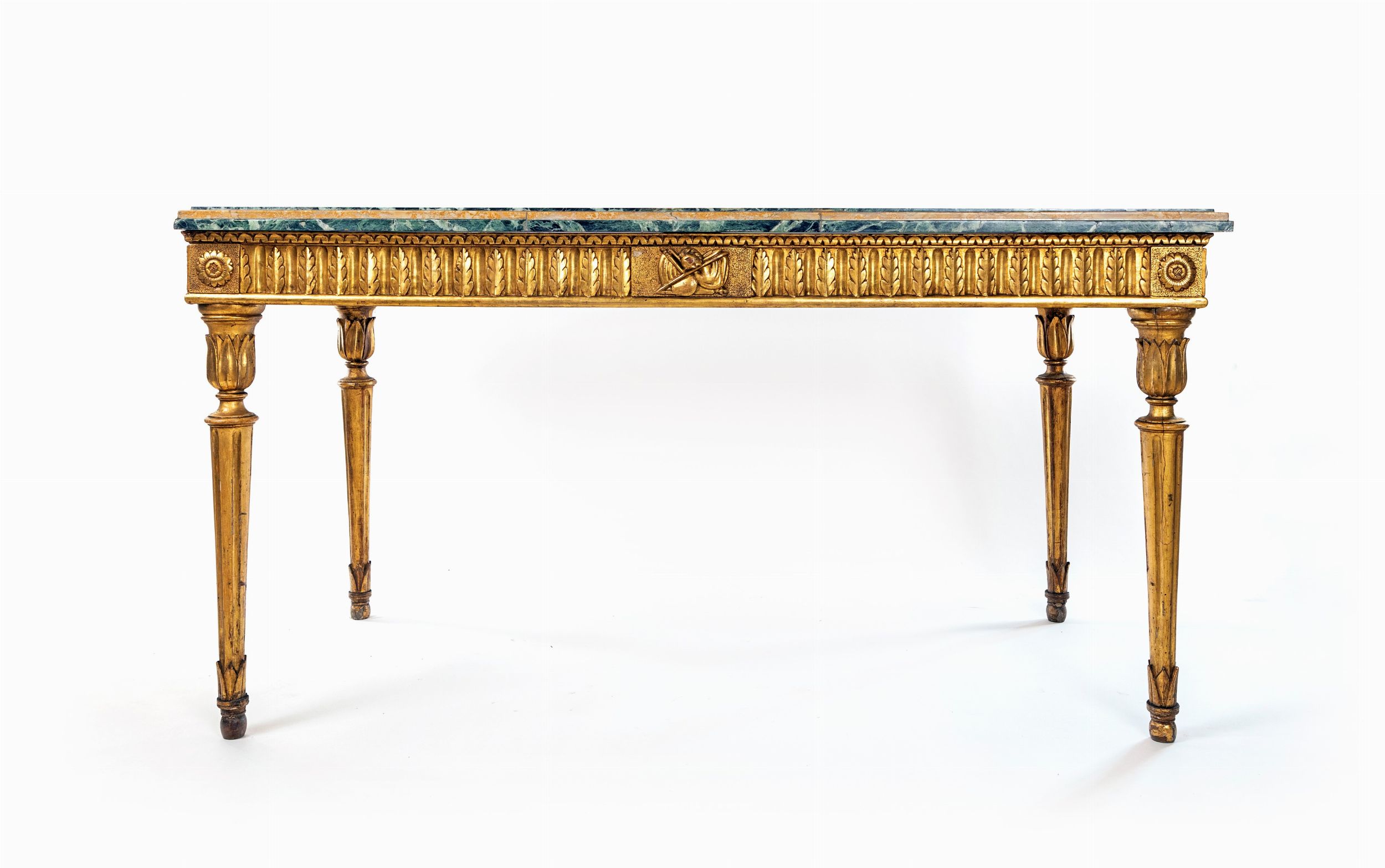 Tavolo da centro di gusto Luigi XVI in legno dorato, fine XIX/inizi XX secolo