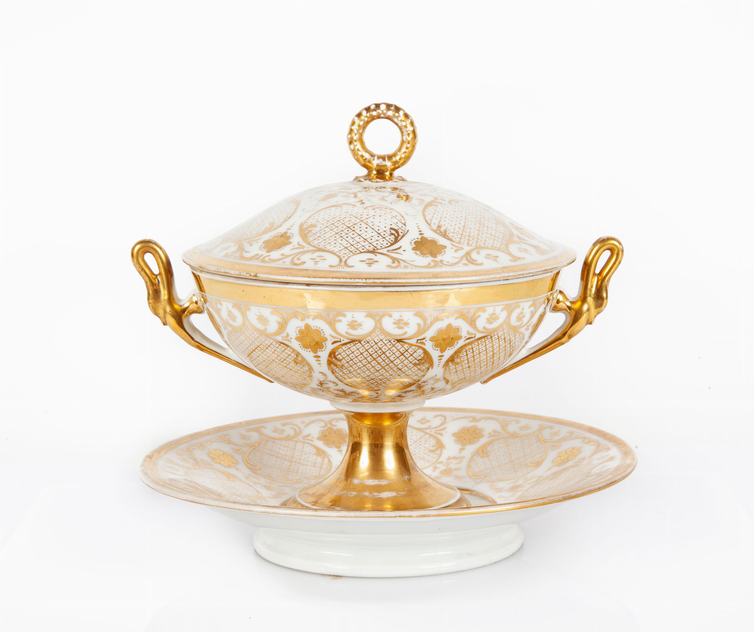 con decorazione dorata a ramages e sottili grillage entro cartigli