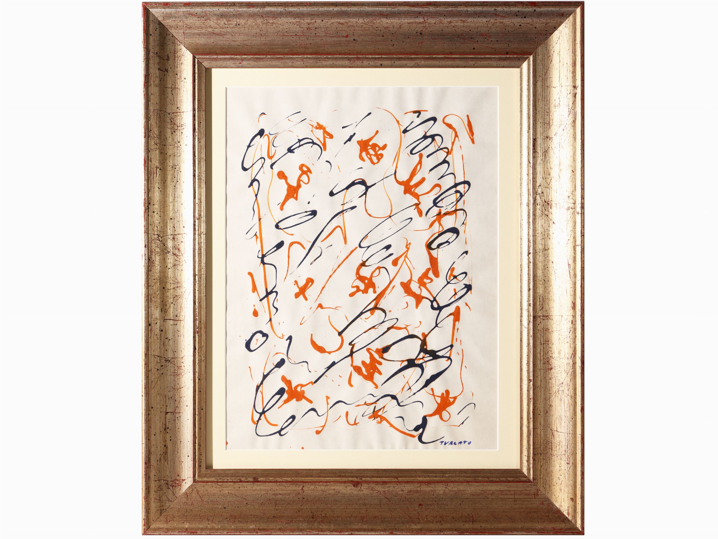 olio e tecnica mista su carta oleata, firmata, in cornice, lievi difetti