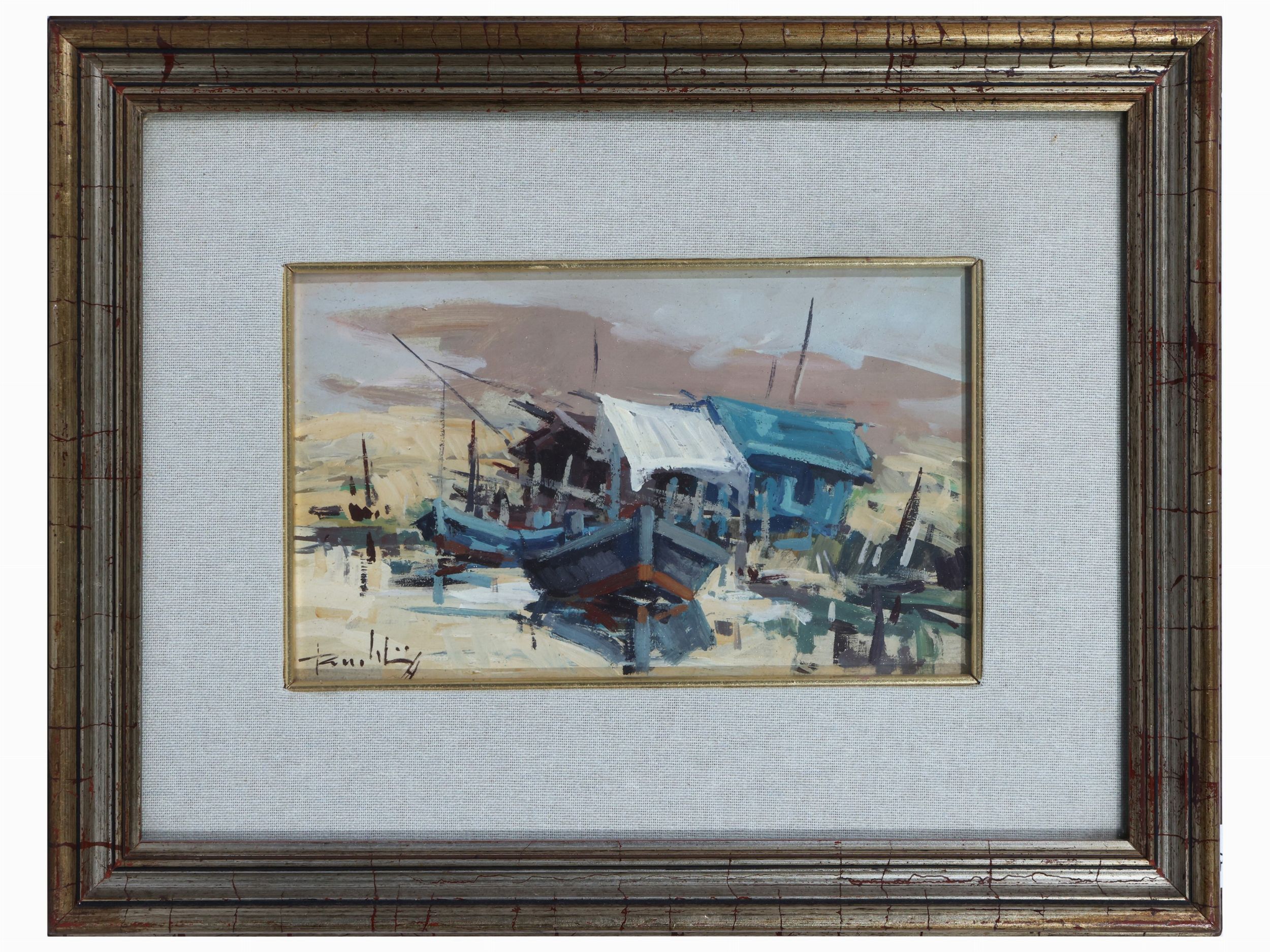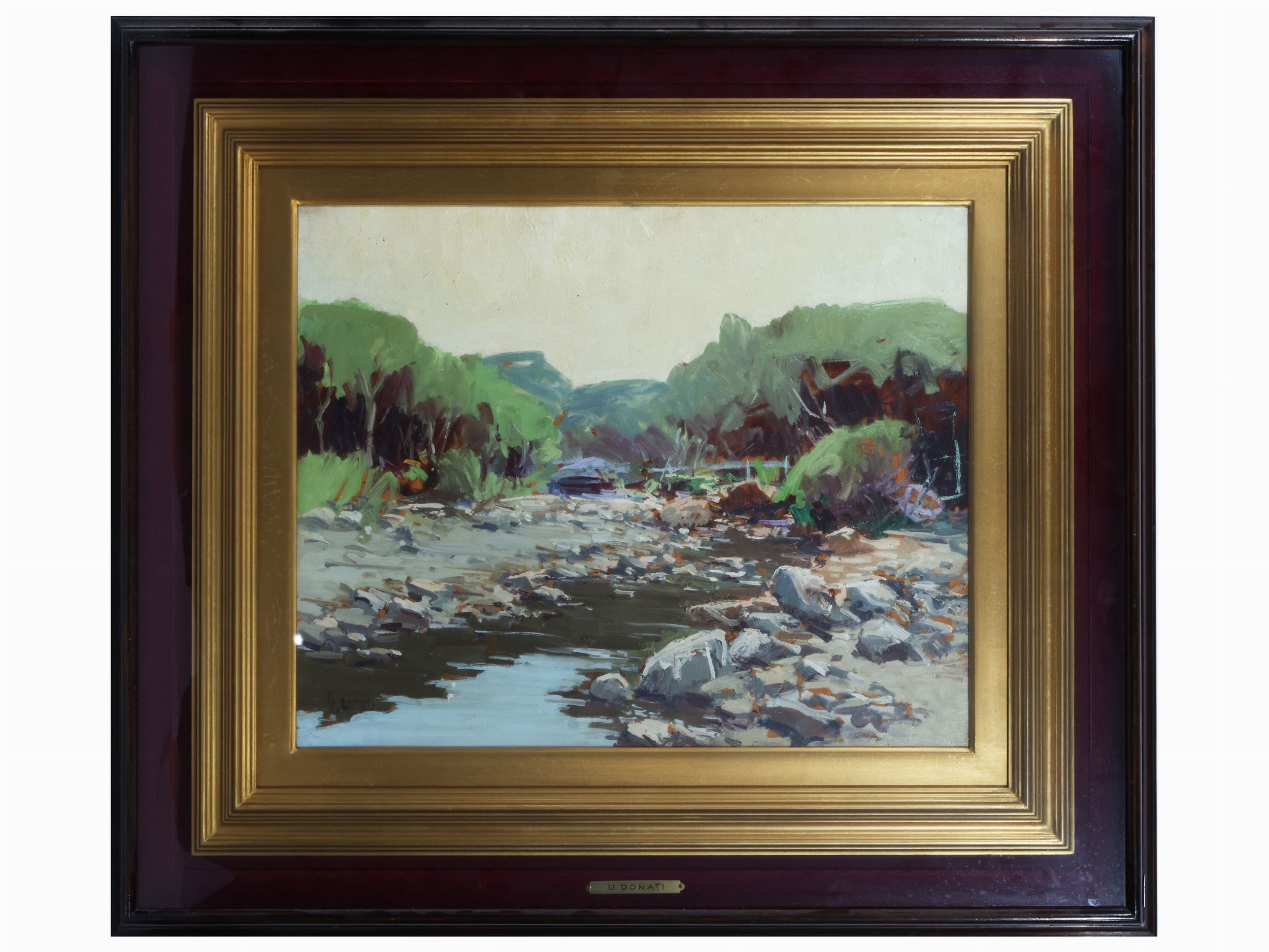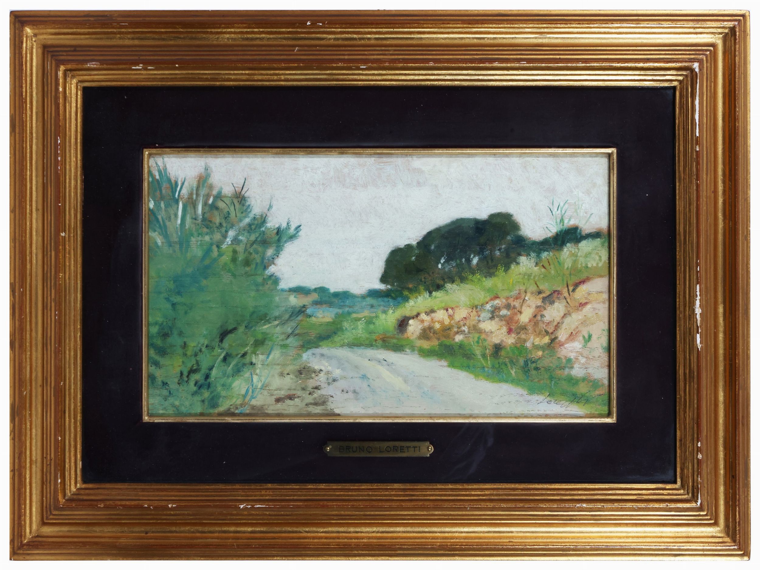 XX secolo raccolta di dipinti tra cui due di Ugo Donati, tre di Bruno Loretti e un disegno di Oreste Zuccoli, in cornice