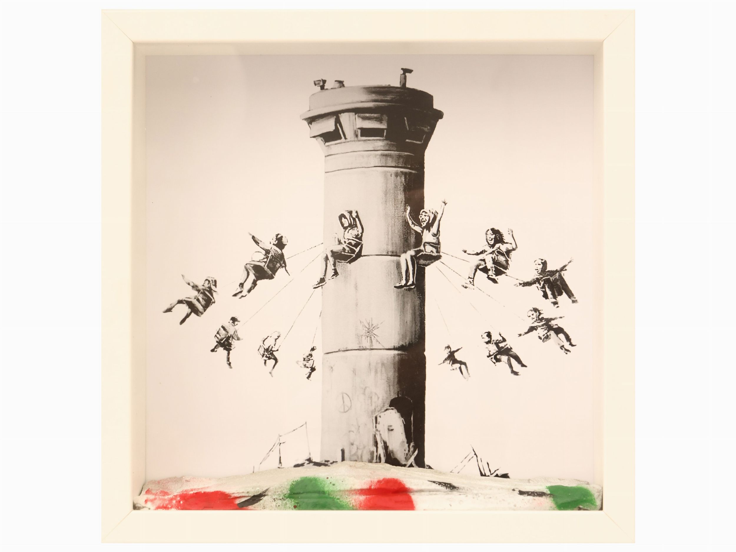 stampa a colori e frammento in cemento, multiplo, in cornice