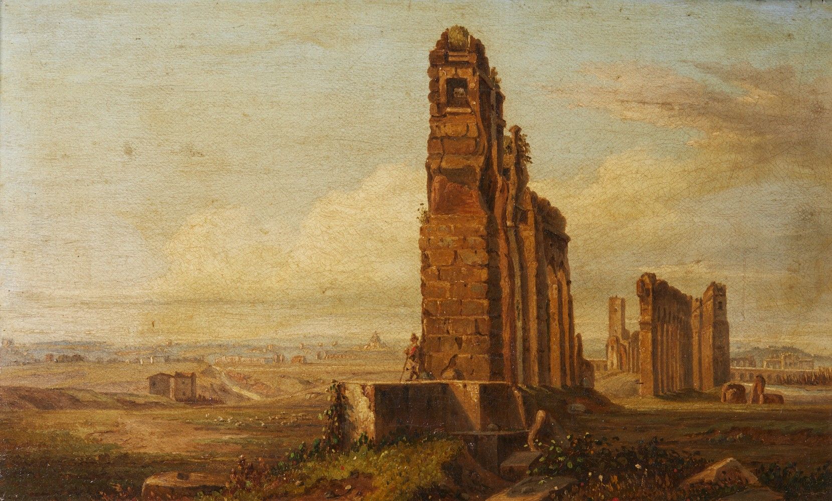 Attribuito a. Veduta della campagna romana con l'acquedotto Claudio