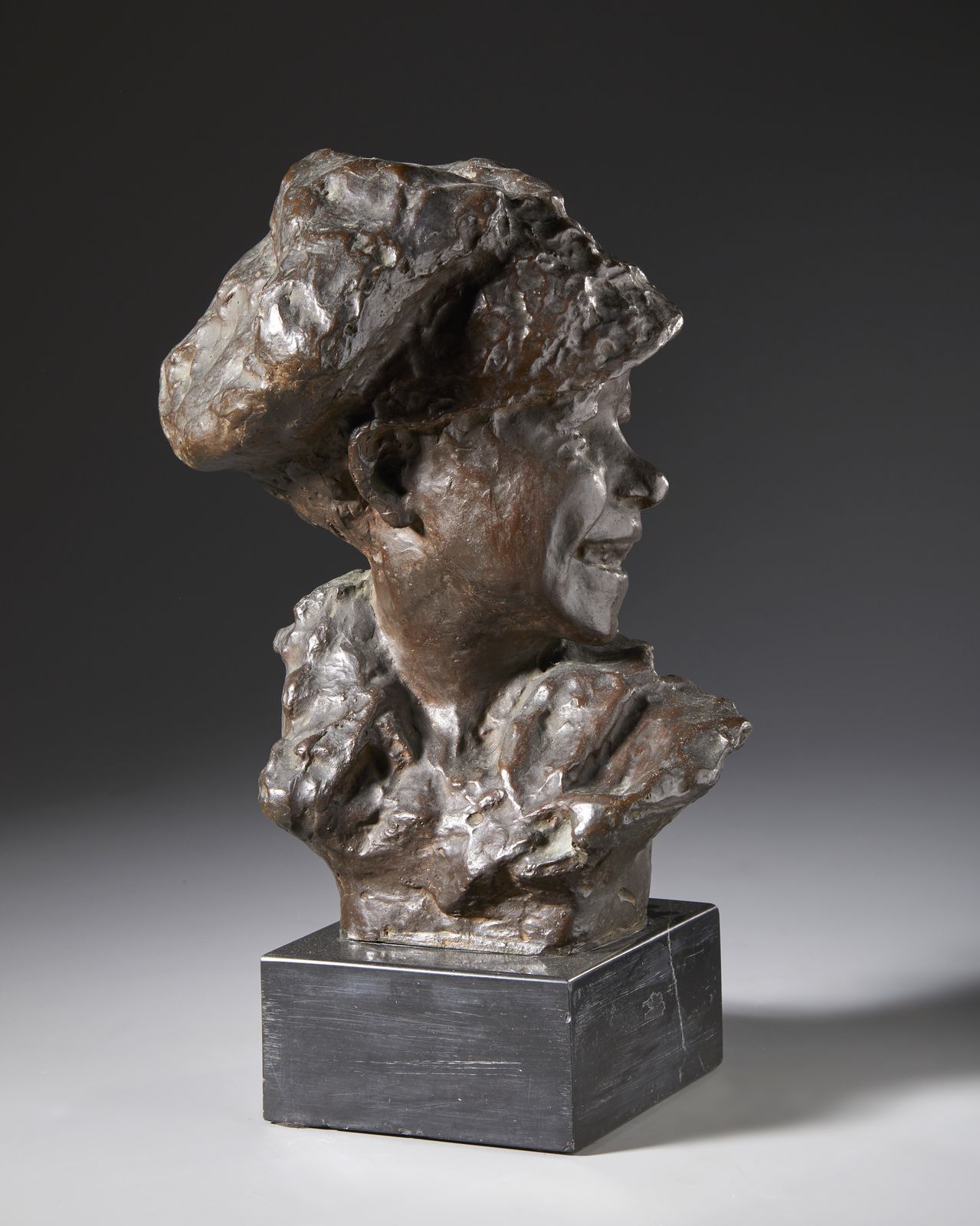 Firmato al retro. Dimensioni con base in marmo: 43,5x29x18,5 cm.