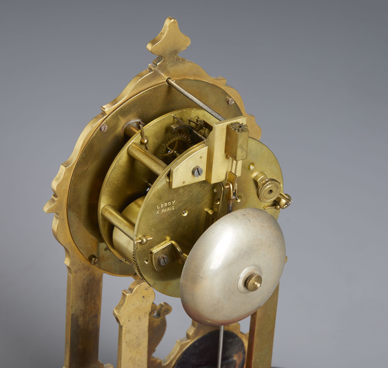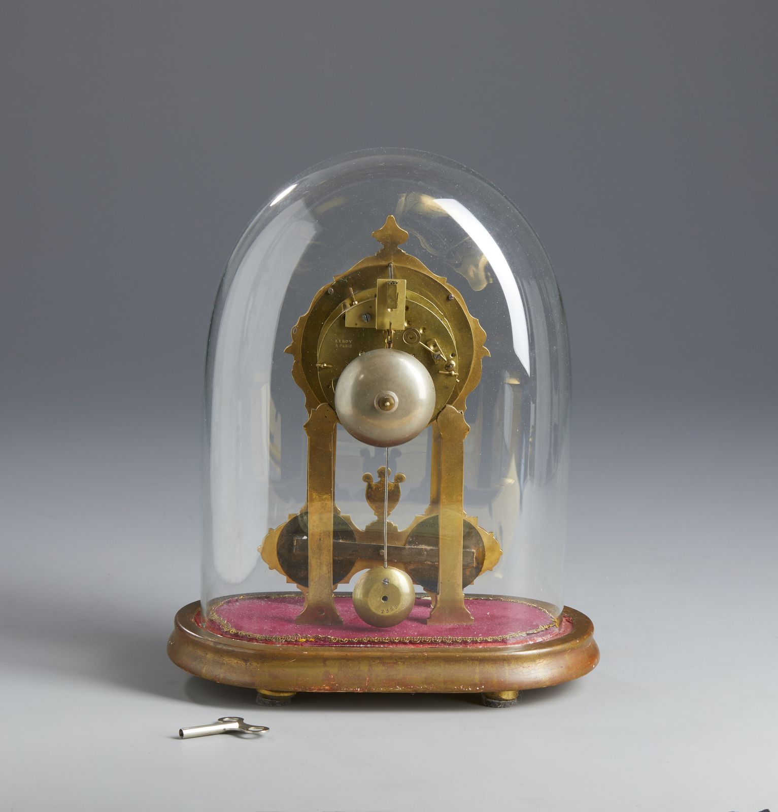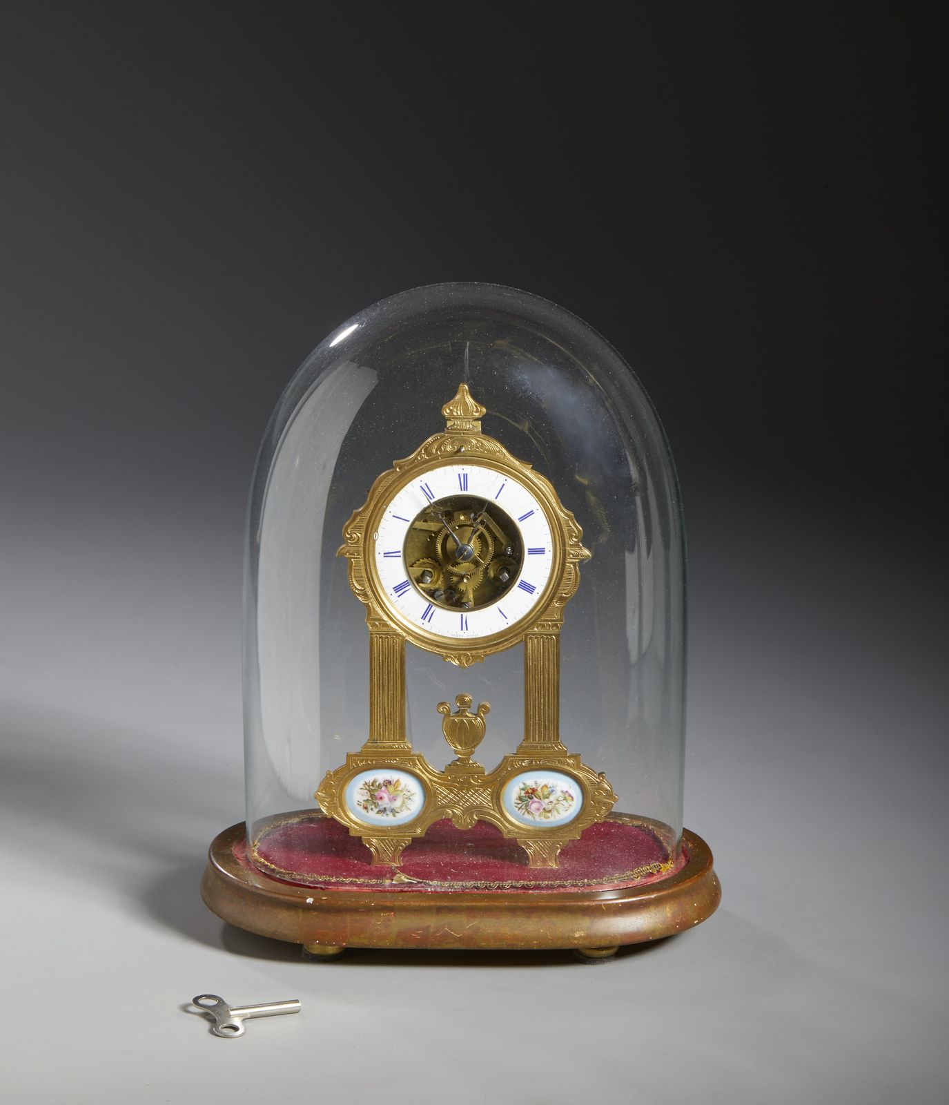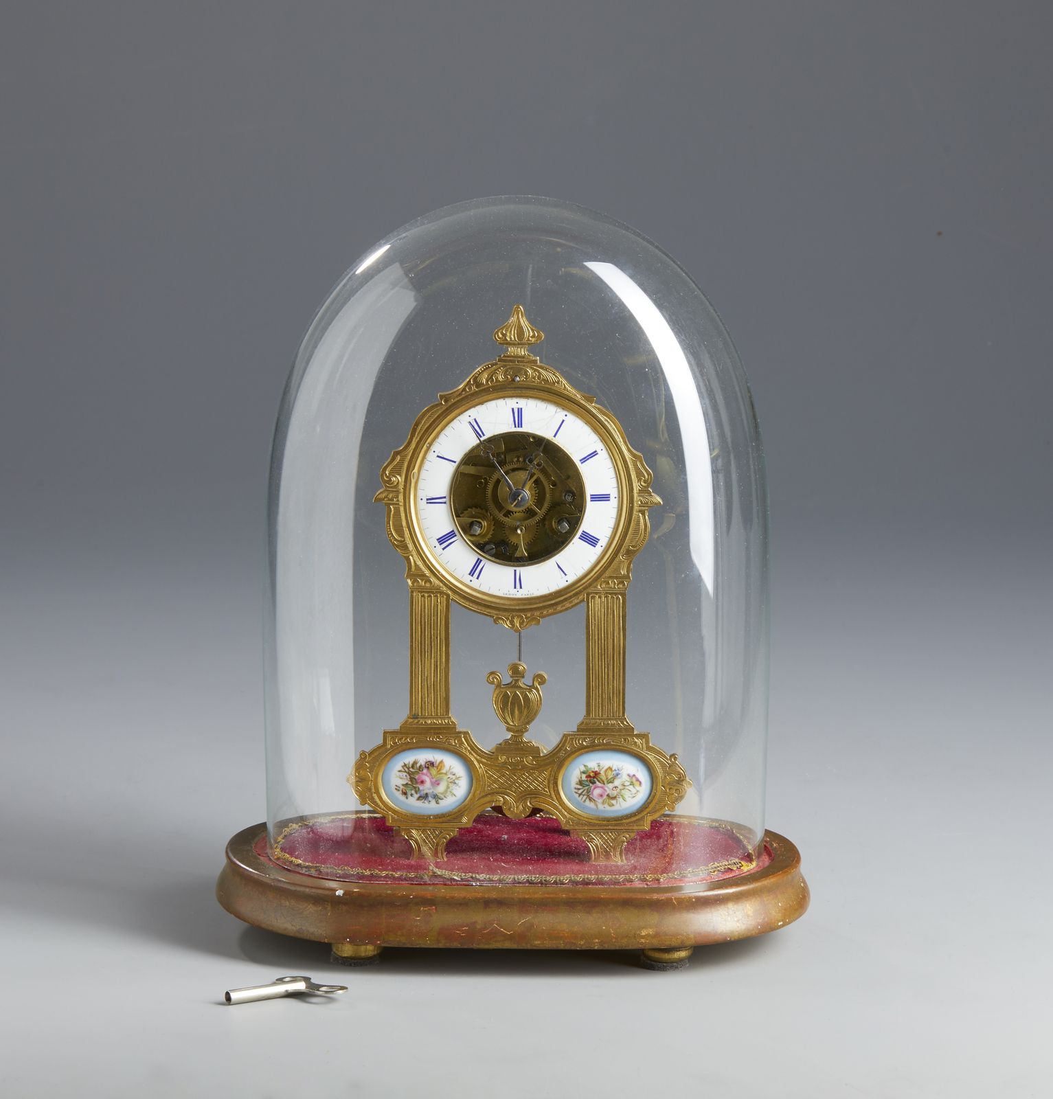 Pendola in metallo dorato con placche decorative e quadrante in porcellana, movimento [..]