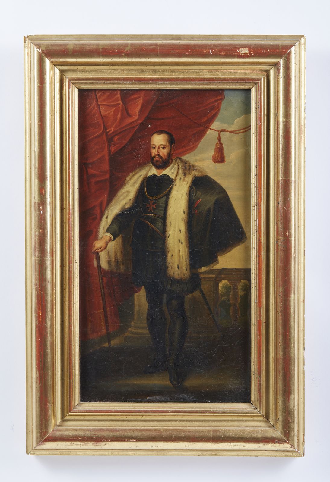 L'opera è una copia del celebre dipinto di Pieter Paul Rubens, conservato presso il Museo del Louvre, Parigi. Il ritratto fa parte del Ciclo di Maria de' Medici, commissionato dalla stessa regina, moglie del re di Francia Enrico IV, nel 1621 per decorare il Palazzo Lussemburgo a Parigi. La serie è composta da ventiquattro tele, ventuno delle quali raffiguranti le glorie e le lotte di Maria de' Medici e tre il ritratto della sovrana e dei due genitori, Francesco I de' Medici e Giovanna d'Austria.