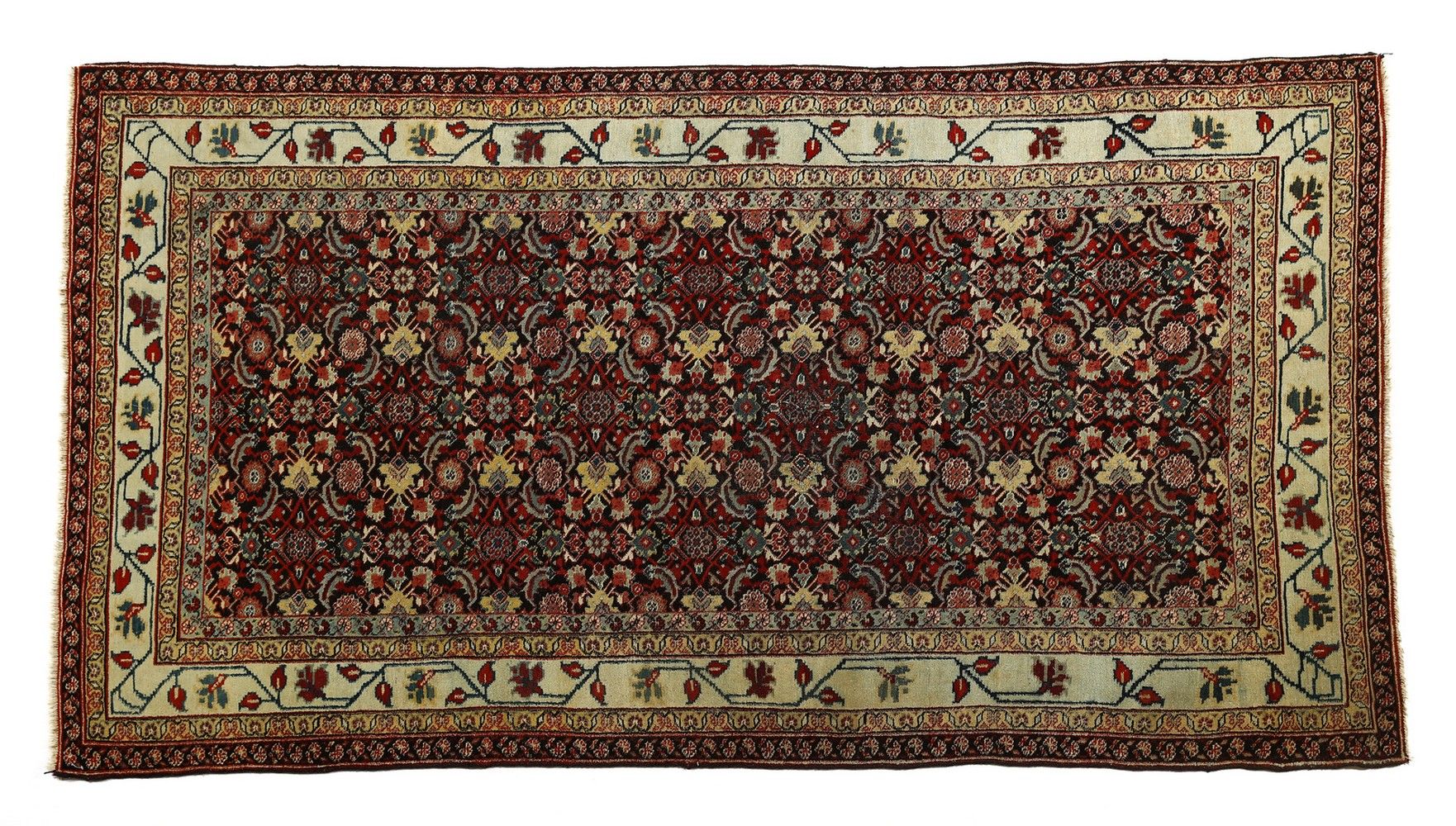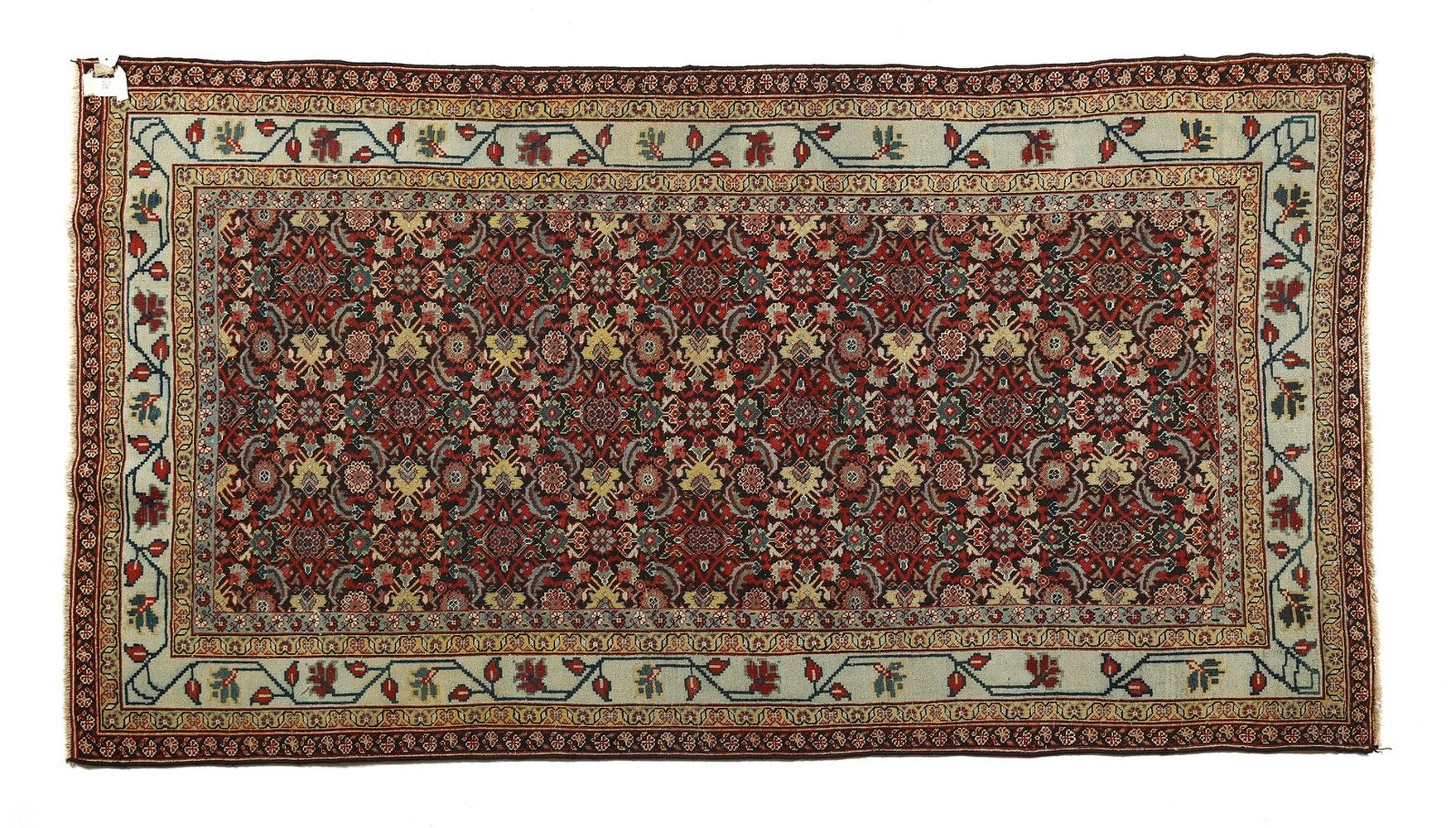 Tappeto indiano con campo centrale a decorazioni geometriche inquadrato da fascia [..]